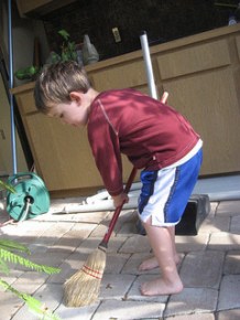 When you lean forward, gravity is pushing on all of your upper body. Your head alone is 12 to 15 pounds; now add torso, shoulders, and arms that are busying themselves, and the poor, overworked lumbar region is working overtime holding up all this. Now add the swinging motions of sweeping or vacuuming and disaster is just waiting to happen: pop! goes a vertebra and all of a sudden you can’t straighten out. Or your back is merely achy and sore afterwards.